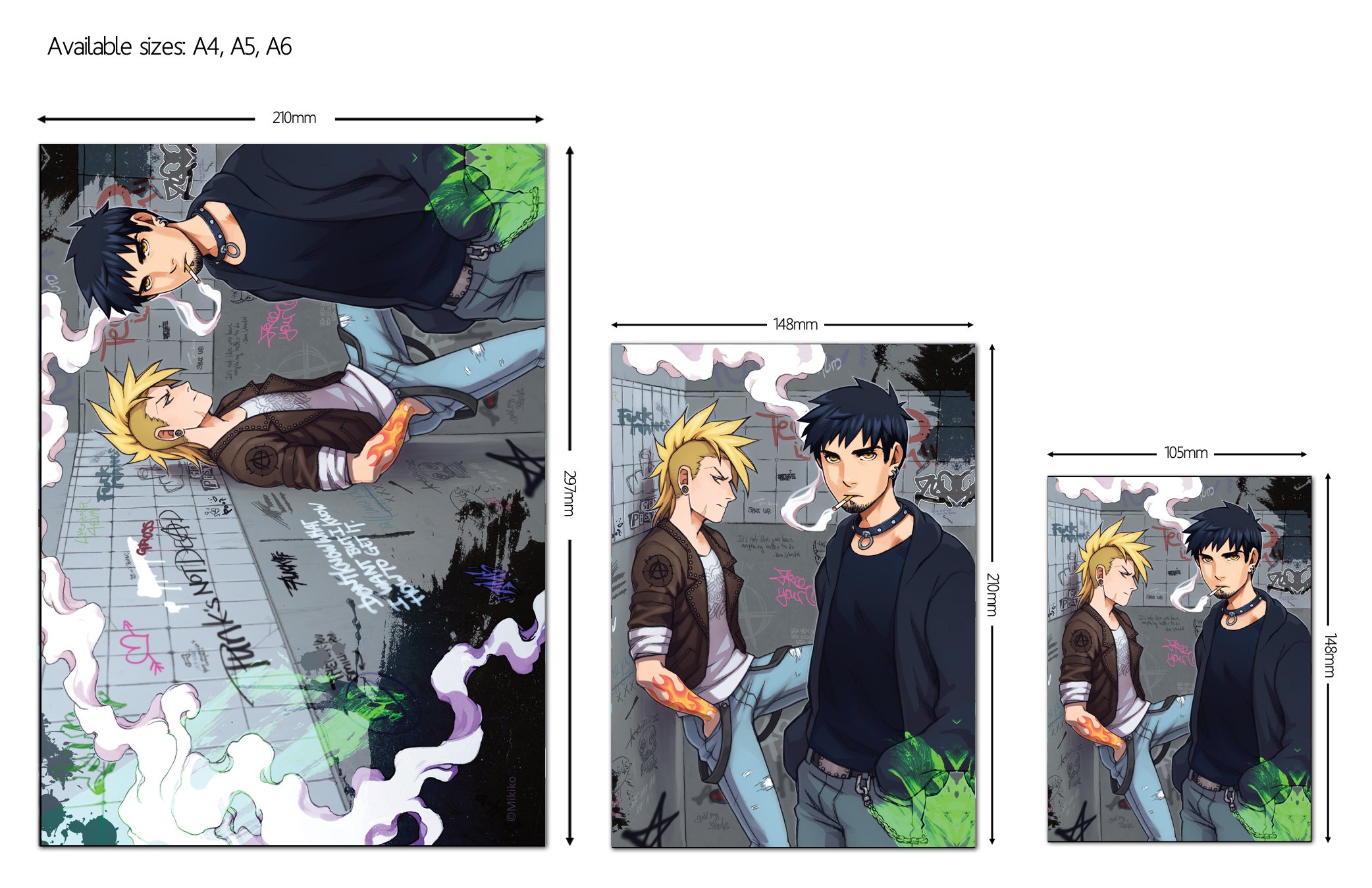 Large (A4), medium (A5) or small (A6) print on sturdy paper. Print comes without watermark. :)