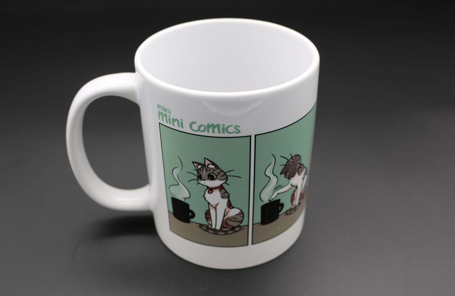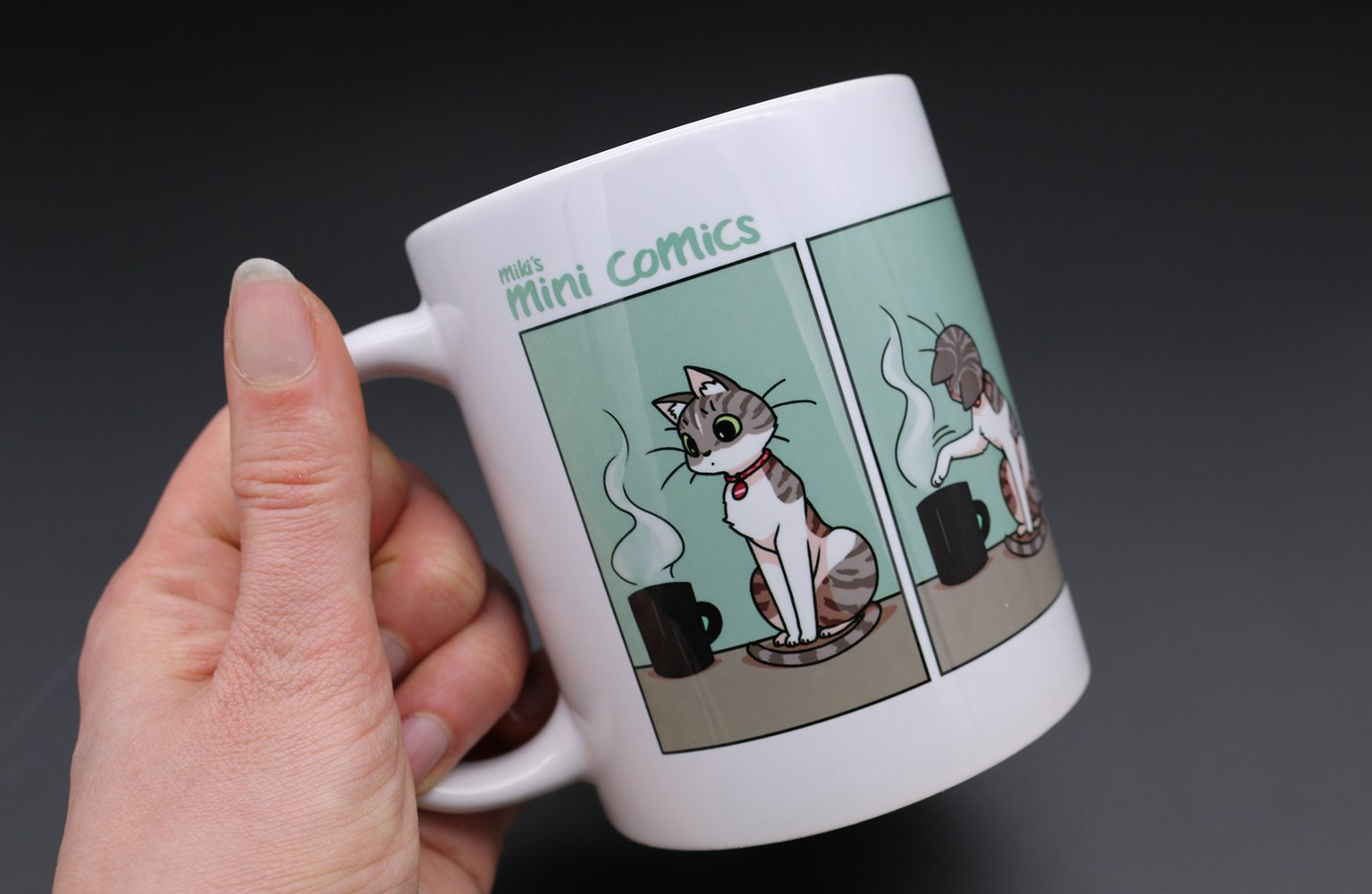 Wonderful ceramic mug with a cute cat cartoon. Perfect for your daily coffee or tea!